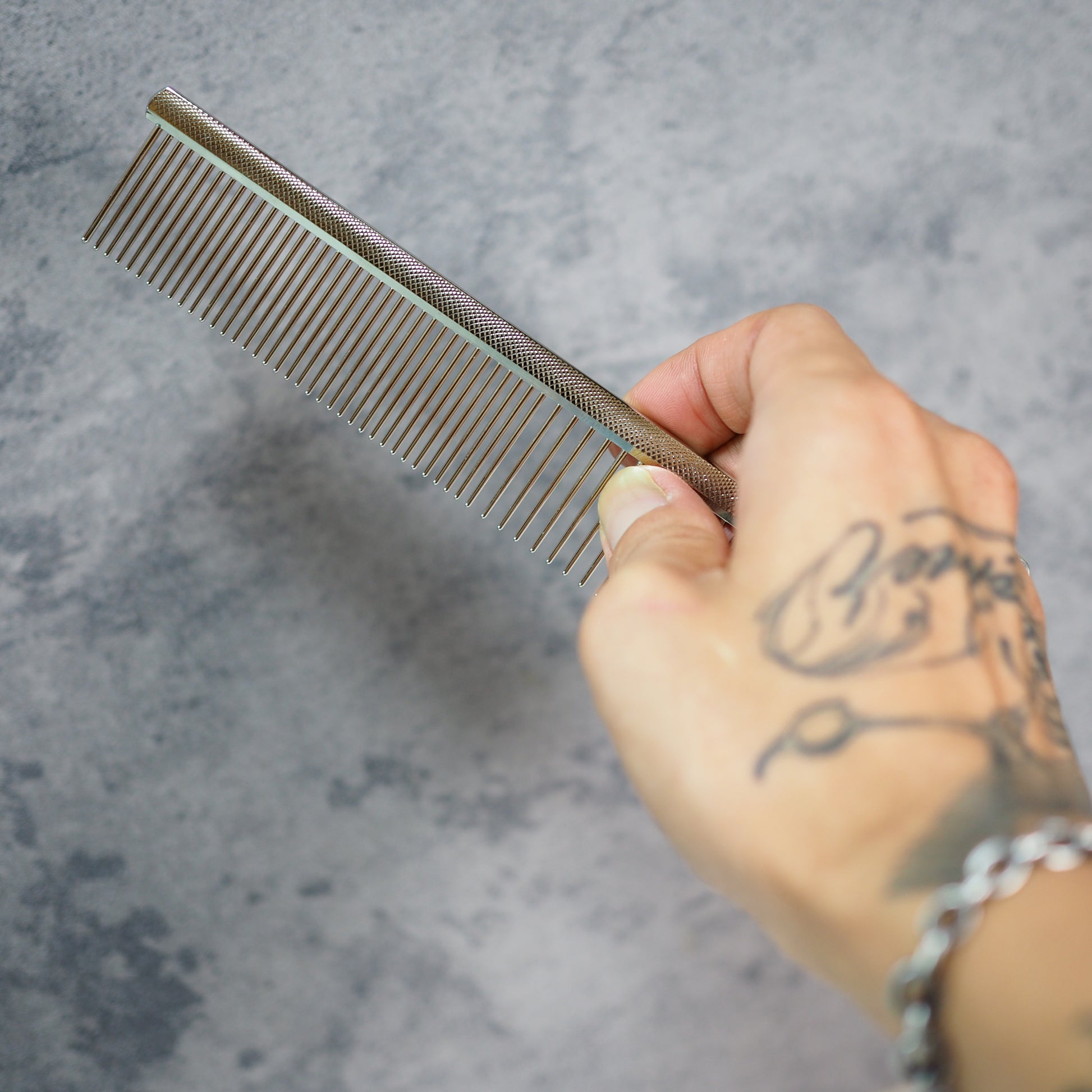 シャンプー前のベーシックコームミングに最適な太くて強いピンが特徴のコーム。
