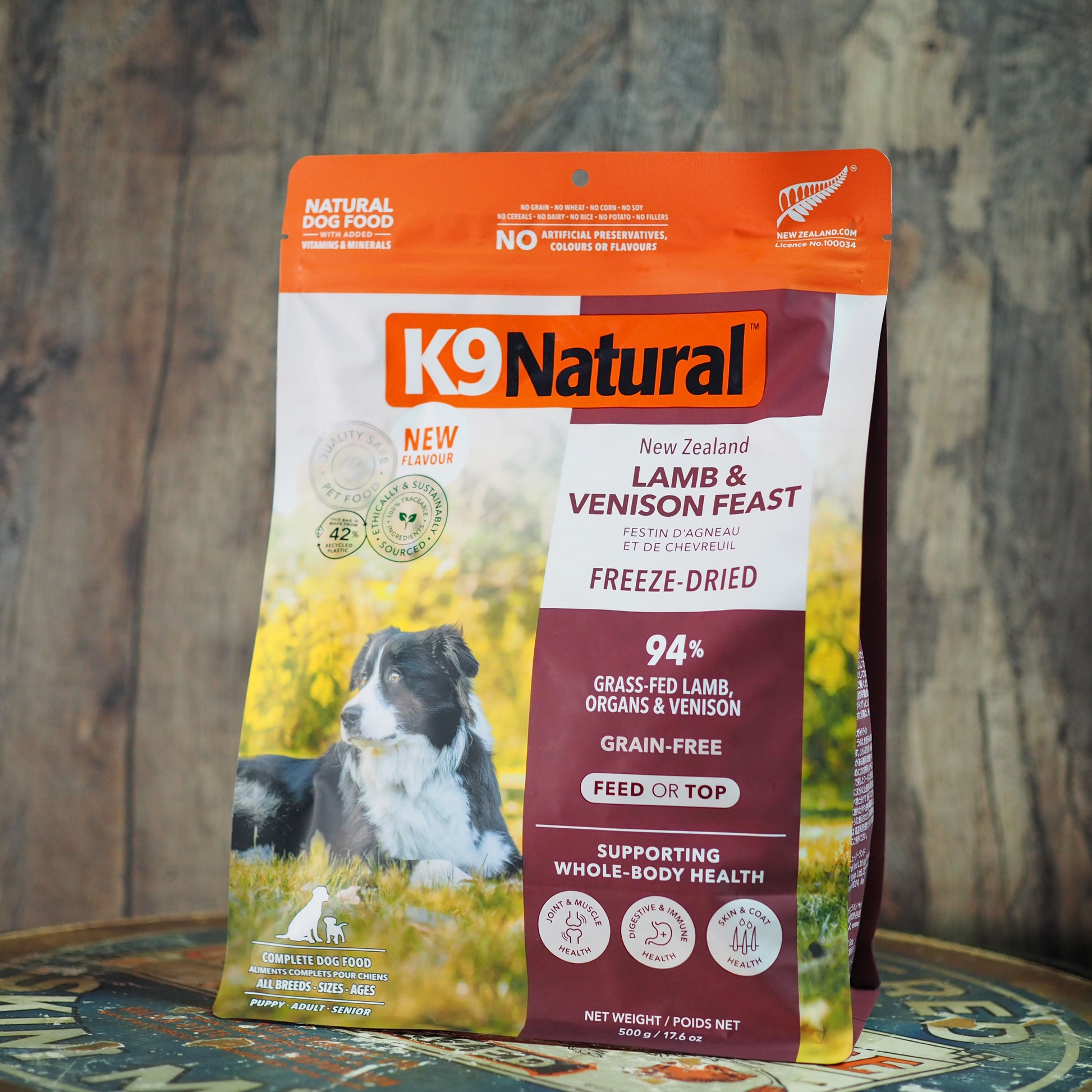 K9 Naturalのフリーズドライフードは、犬の祖先であるオオカミが主食としてきた鹿肉(ベニソン)を、ニュージーランド産のグラスフェッド・ラム肉とブレンドした、野性味溢れる総合栄養食です。