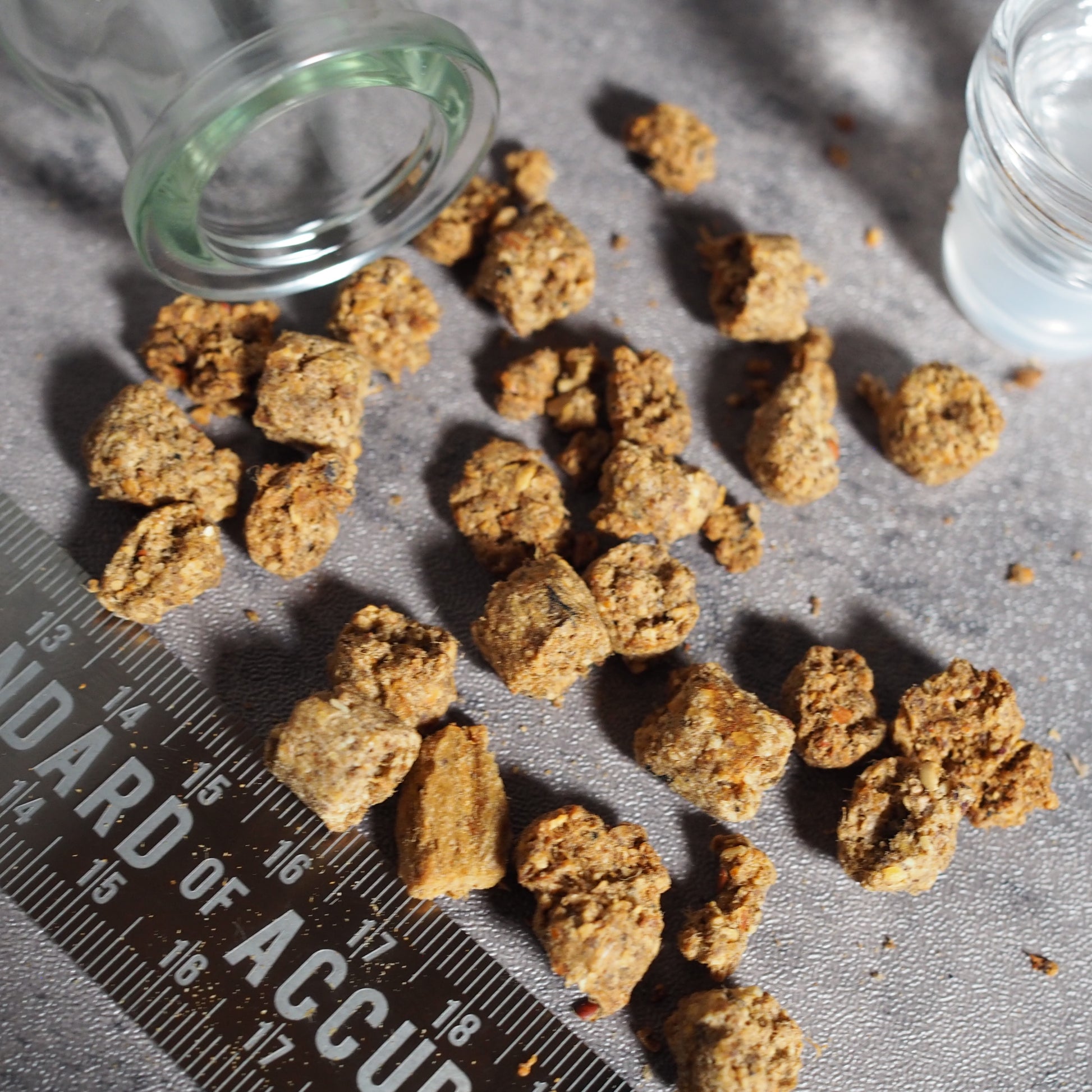 じっくり焼き上げることで、チキンのうまみと香ばしさを引き出し、食欲をそそる仕上がりに。さらにエアドライ製法で仕上げたキブルを5%配合し、嗜好性を高めています。
