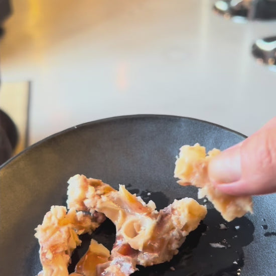 愛媛県宇和島で育った養殖鰤の中落ちを、骨まで柔らかく煮込んでいます。