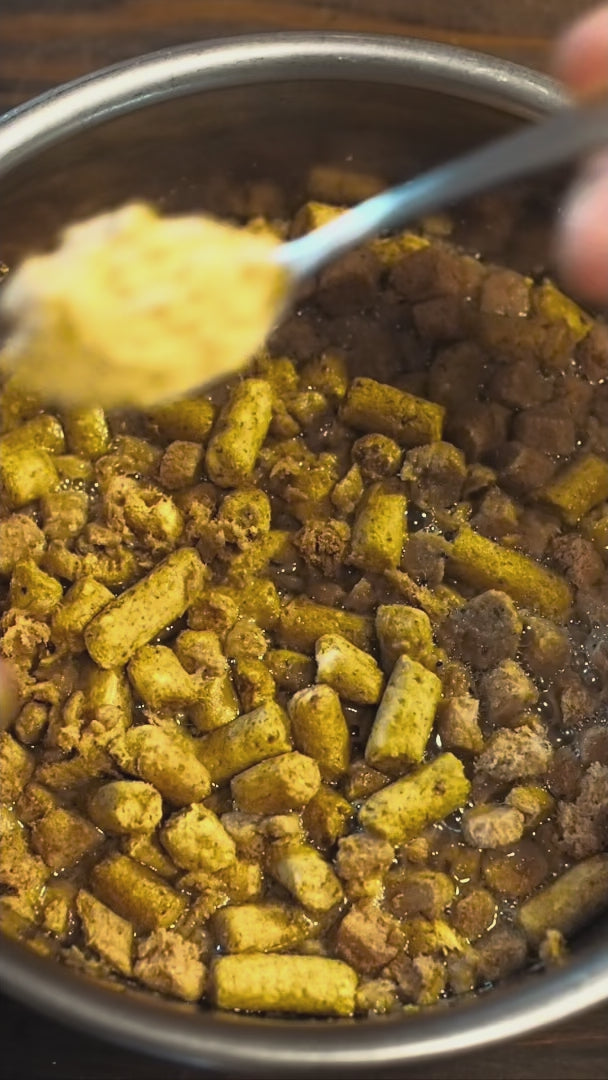 いつものドライフードやウェットフードに、パラパラっとかけるだけ。